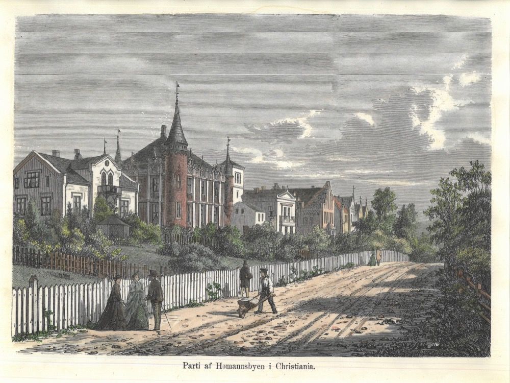 Stockholm, Ca. 1870. Originalt trestikk med senere håndkolorering. Motivets størrelse : 23,3 cm X 16,7 cm. I syrefri passepartout.. .
