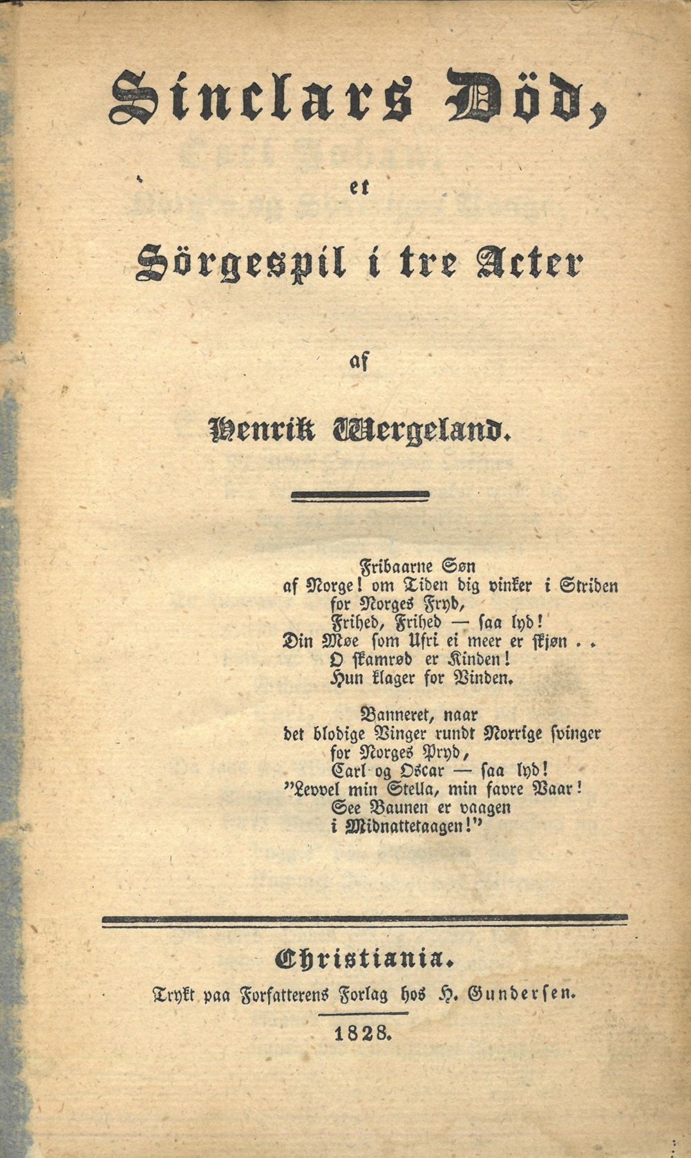 Sinclars Död, et Sörgespil i tre Acter af (...).