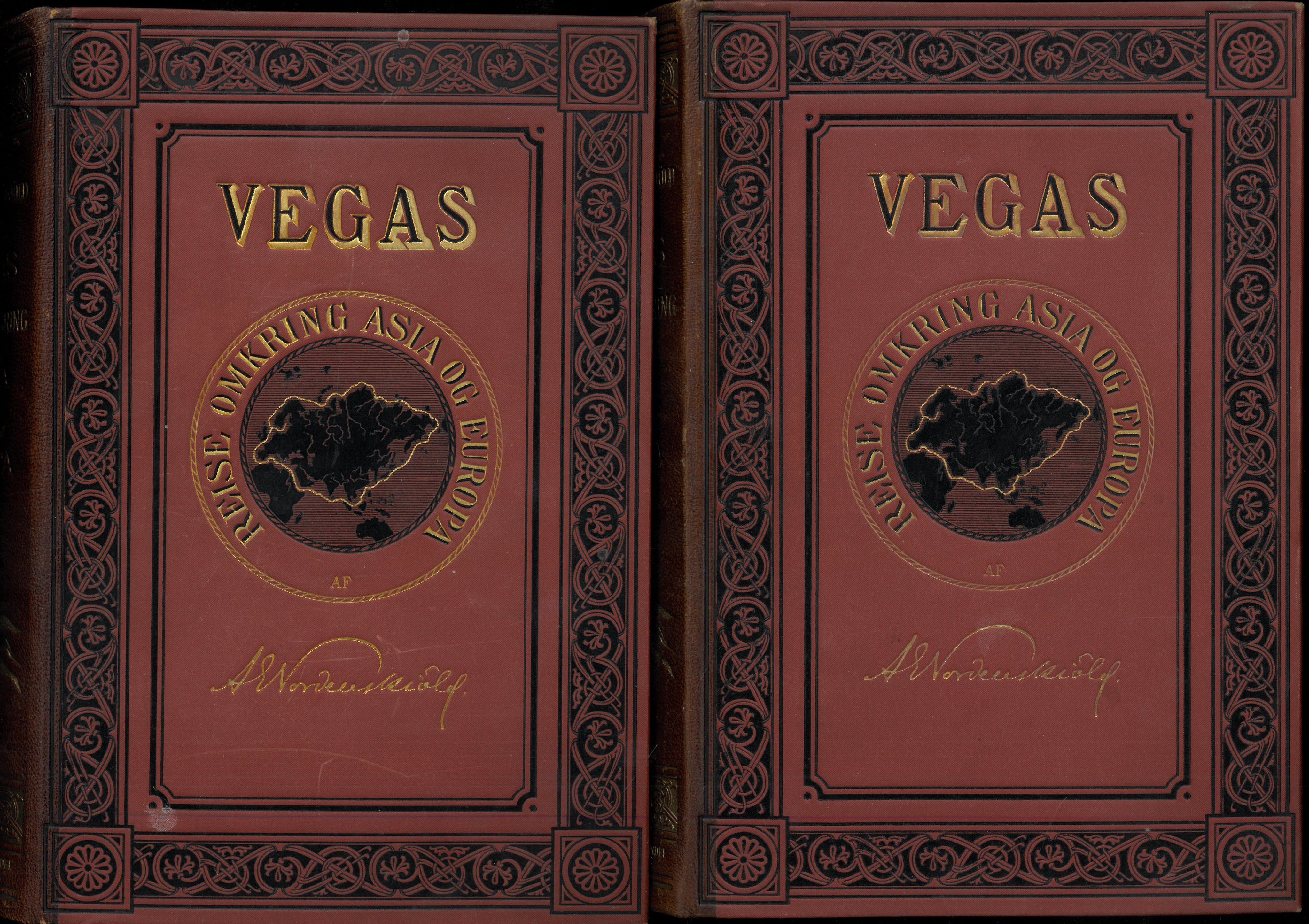 Vegas reise omkring Asia og Europa. Tilligemed et historisk tilbageblik paa tidligere reiser langs nordkysten af den gamle verden. Autoriseret udgave for Norge og Danmark ved B. Geelmuyden. Med illustrationer og karter. I-II.