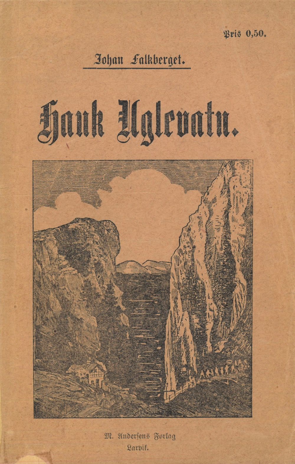 Hauk Uglevatn. Fortælling fra Dovrefjeld. 2det oplag ialt 10.000. Tilkjøbs hos A. O. Lunde, Bergen.