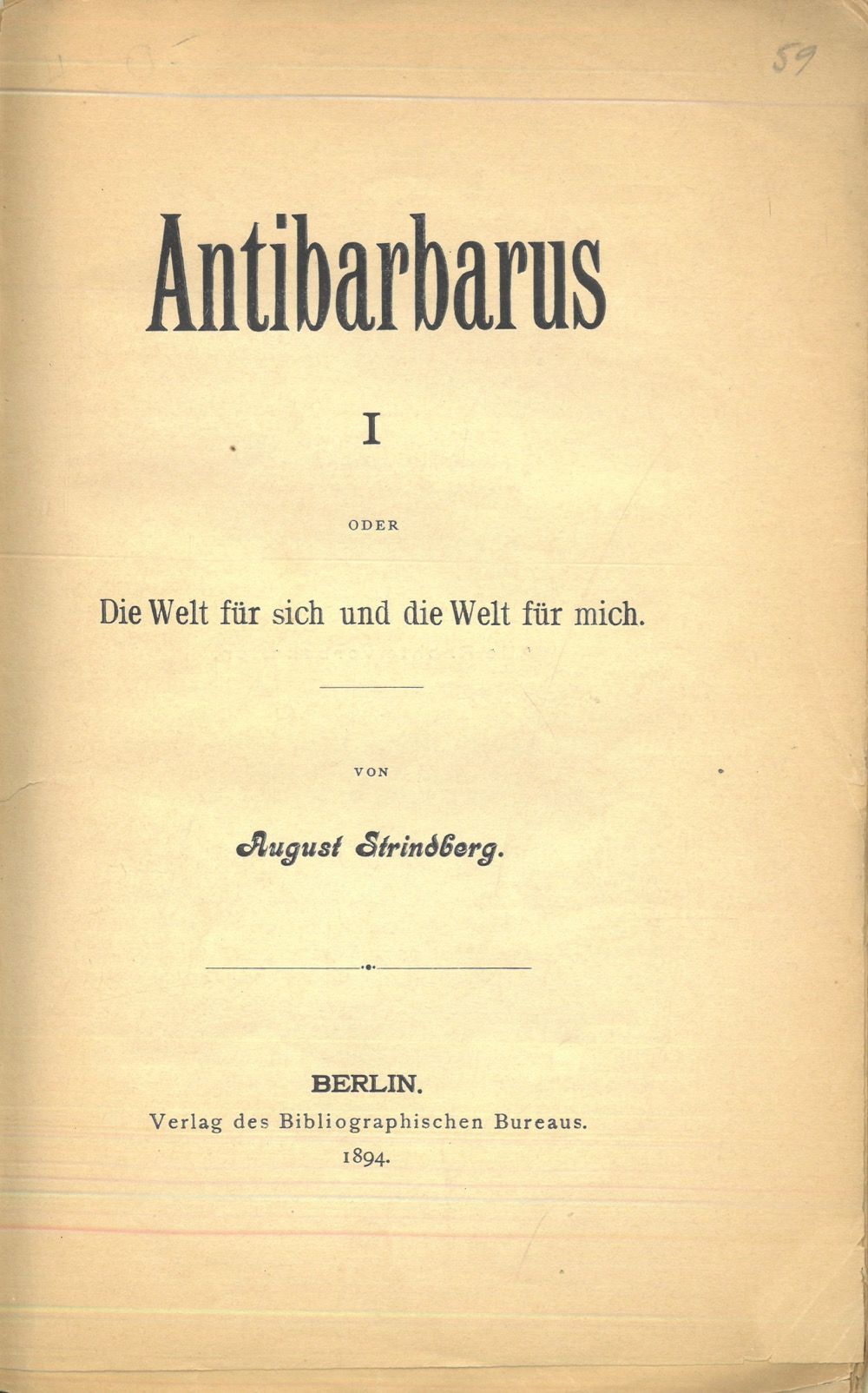 Antibarbarus. I. Oder Die Welt für sich und die Welt für mich.