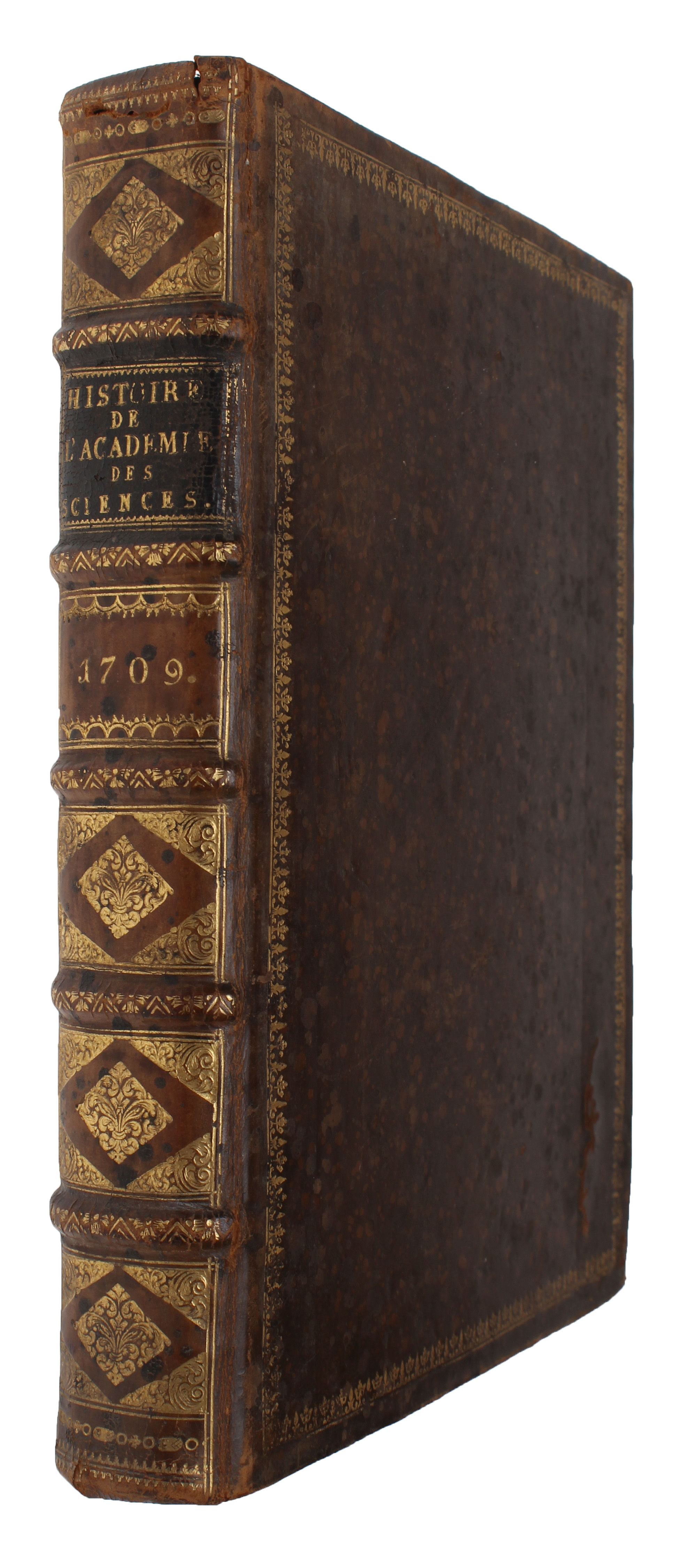 Paris, Par la Compagnie des Libraires, 1733. 4to. Contemp. full mottled calf. Raised bands. Richly gilt spines. Gilt borders on covers. (8),128,462 pp. and 15 engraved plates (some folding). Internally clean.