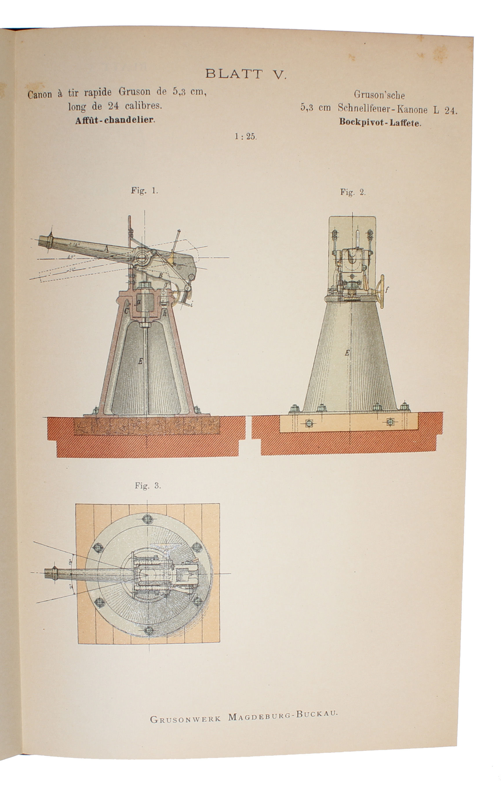 Rare publication on the Gruson quick-firing guns, carriages, ammunition and ballistics.