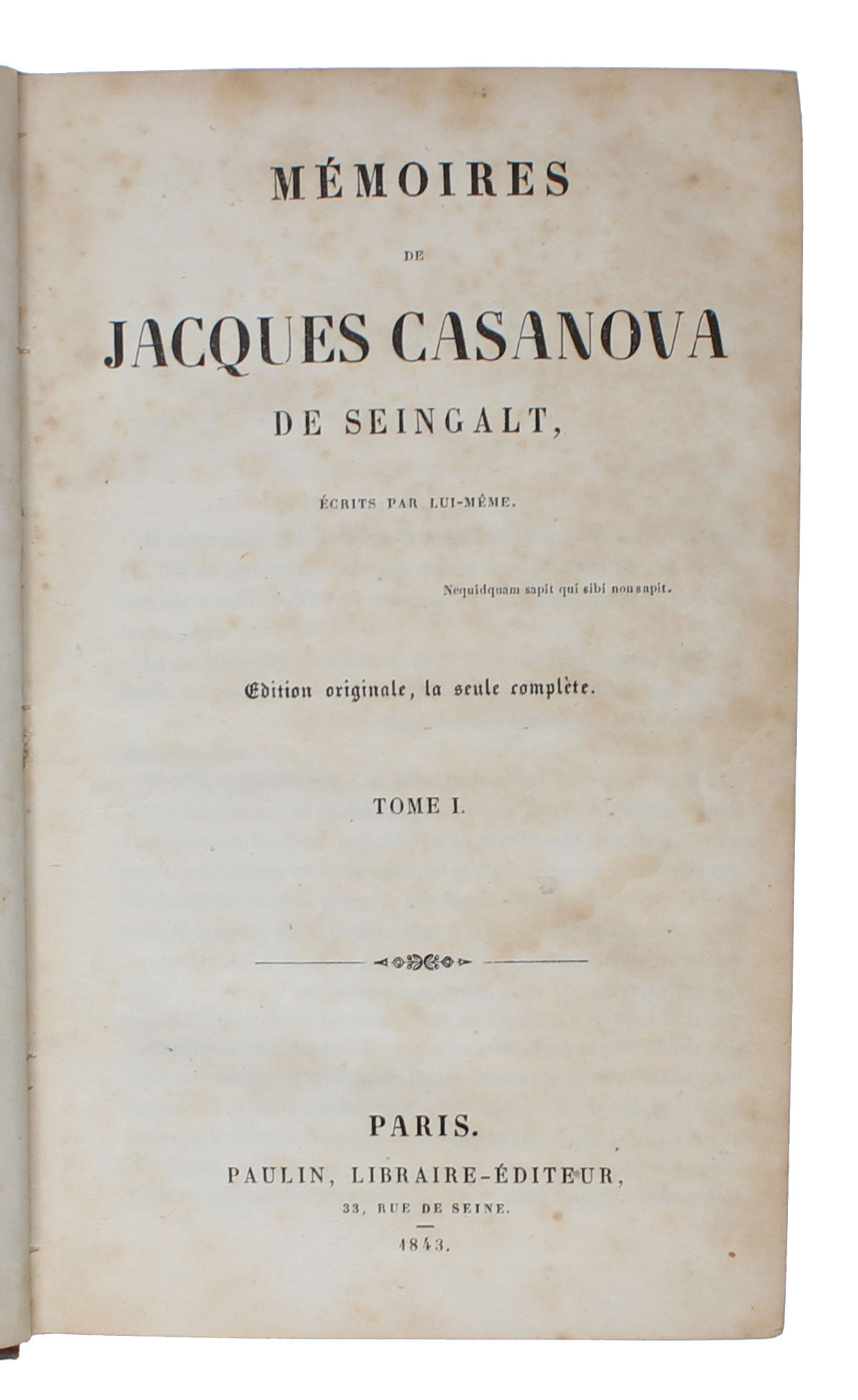 Mémoires de J. Casanova de Seingalt écrits par lui-même. Édition originale, la seule complet. 4 vols.