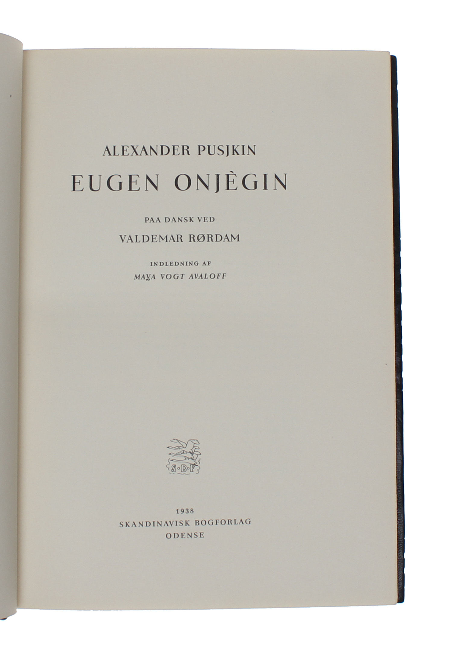 Eugen Onjégin paa dansk ved Valdemar Rørdam. Indledning af Maya Vogt Avaloff.