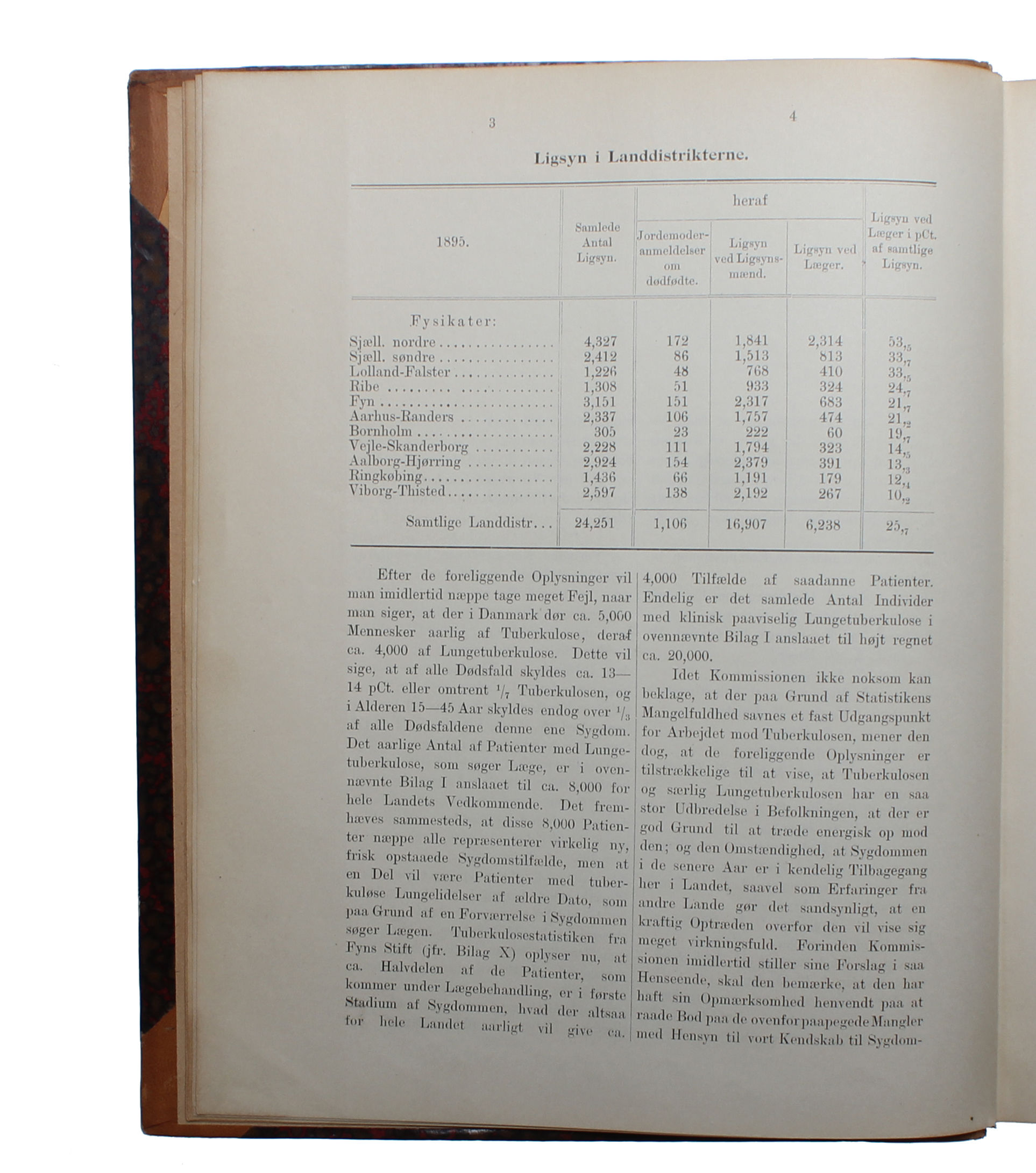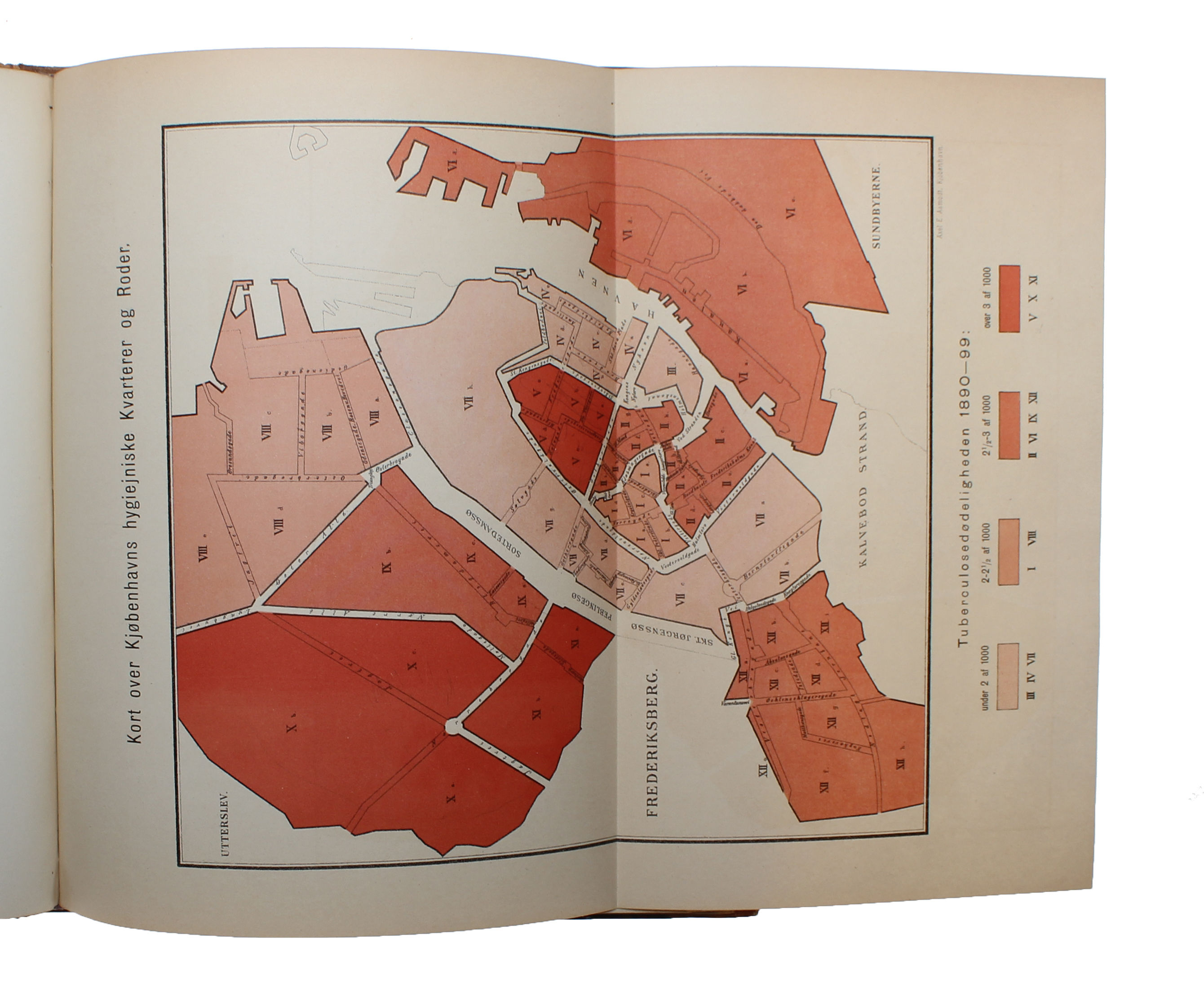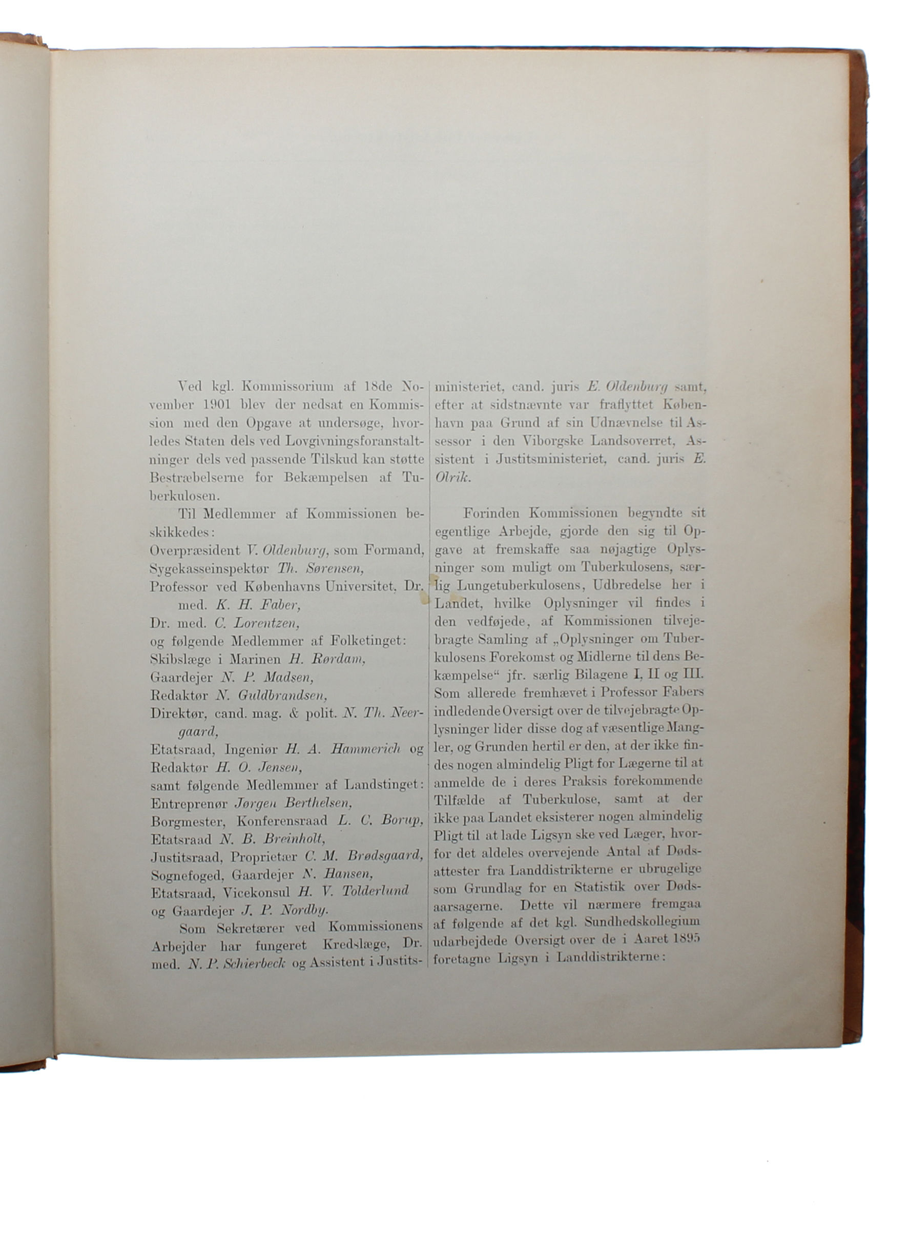 Rare first appearance of the report from the Danish Royal Commission of 18th November 1901 on how to prevent and cure tuberculosis. The commissions work had profound influence on the spread of tuberculosis and in particular the death rate which dropped dramatically. "In 1901, a national society for the prevention of tuberculosis was stated in Denmark, which now has ten sanatoria, and the results of the very comprehensive measures adopted have been so good that Denmark has long held second place to New Zealand in having the lowest tuberculosis mortality." (New Zealand, Parliamentary Debates, 1948).