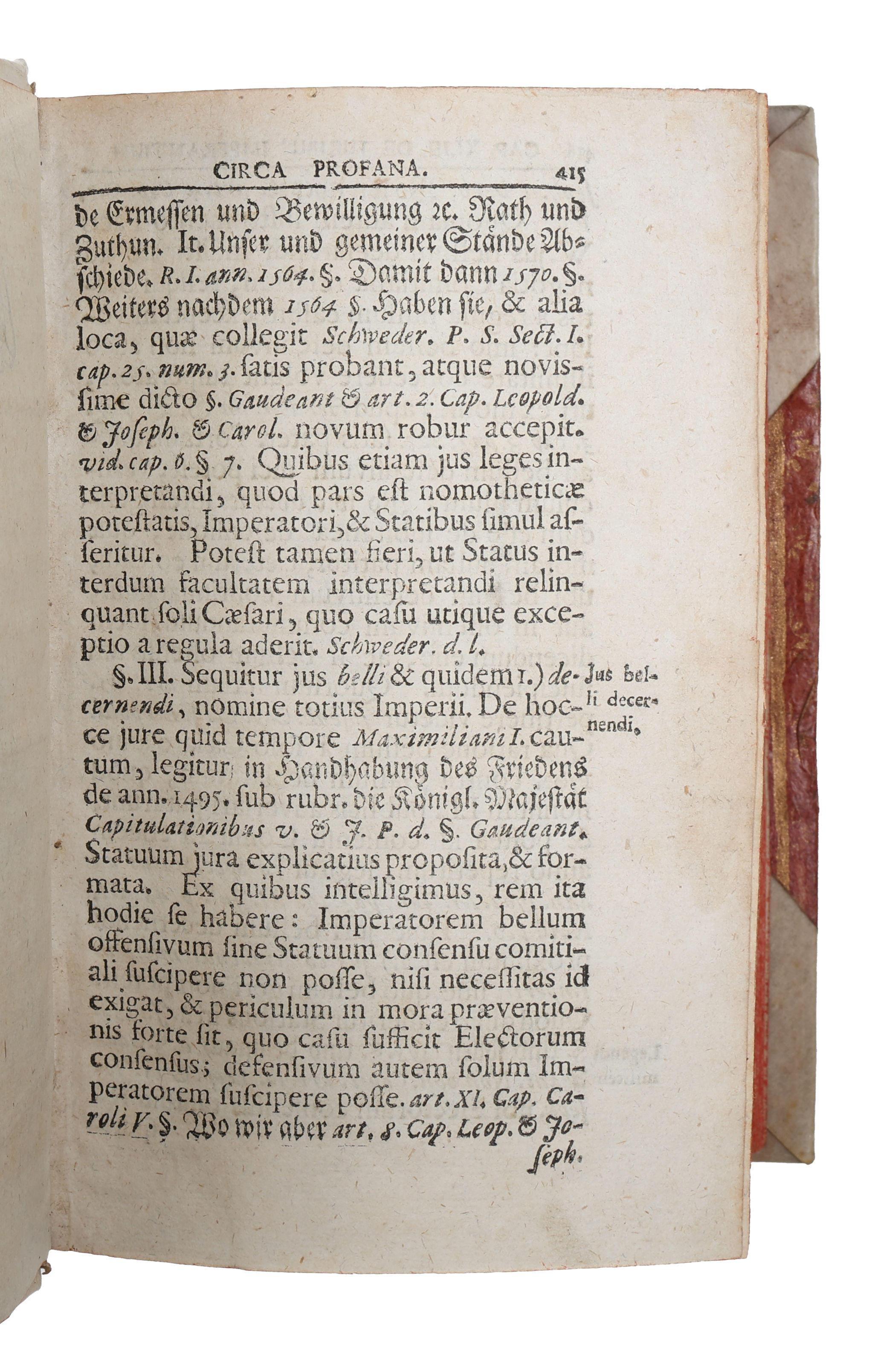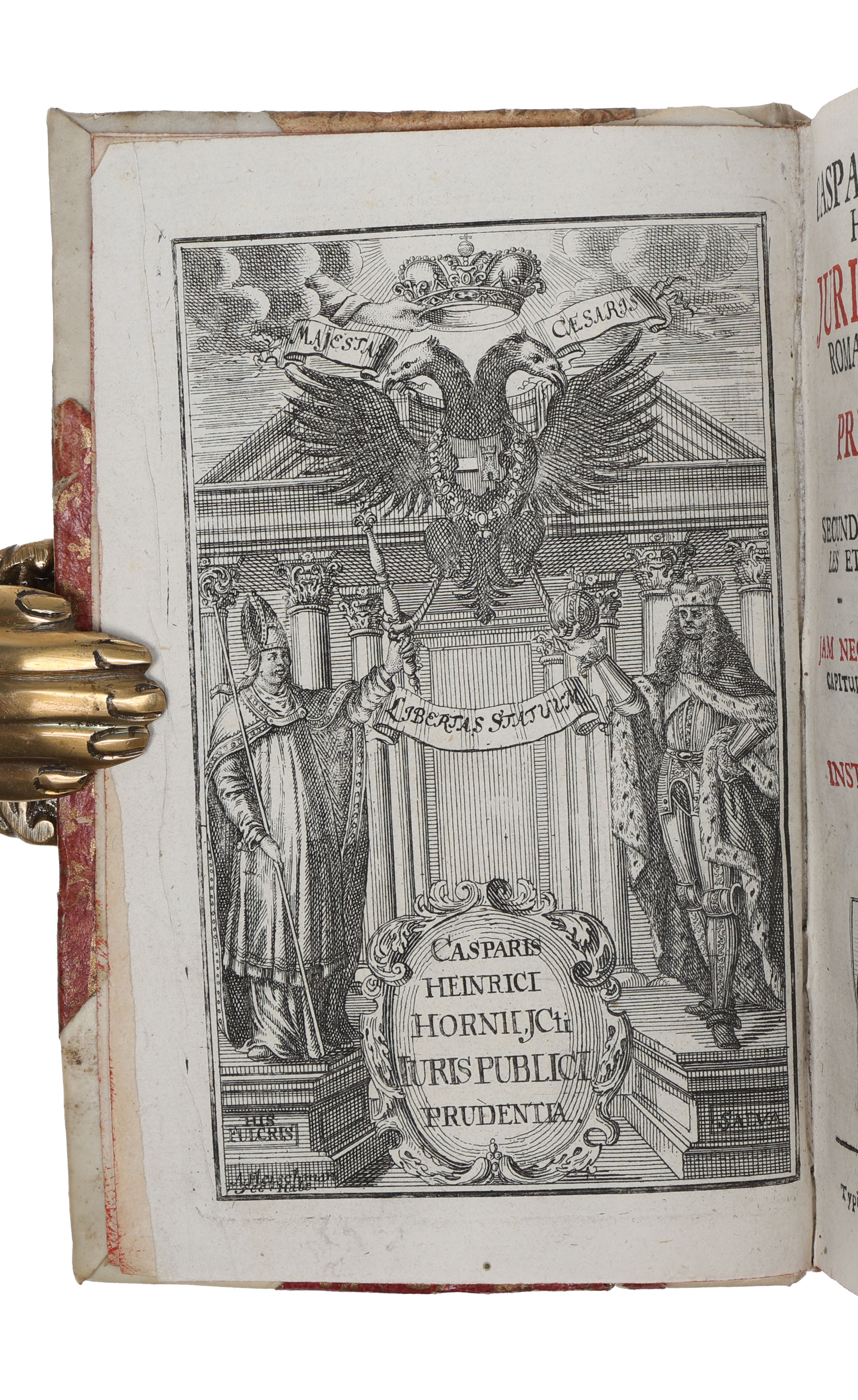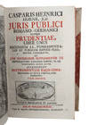 Interesting sammelband containing two works by Caspar Heinrich Horn on constitutional law focusing on aspects of Roman-German public law and the political structure of the Empire, especially regarding the responsibilities and agreements surrounding the election of an emperor. The first workis a study of the public law of the Holy Roman Empire combining Roman legal principles with Germanic customs and practices. Horn examines the structure, powers and legal foundations of the Empire discussing how Roman legal concepts were adapted to fit the Germanic context. The second work is on the electoral capitulation of Emperor Charles VI.