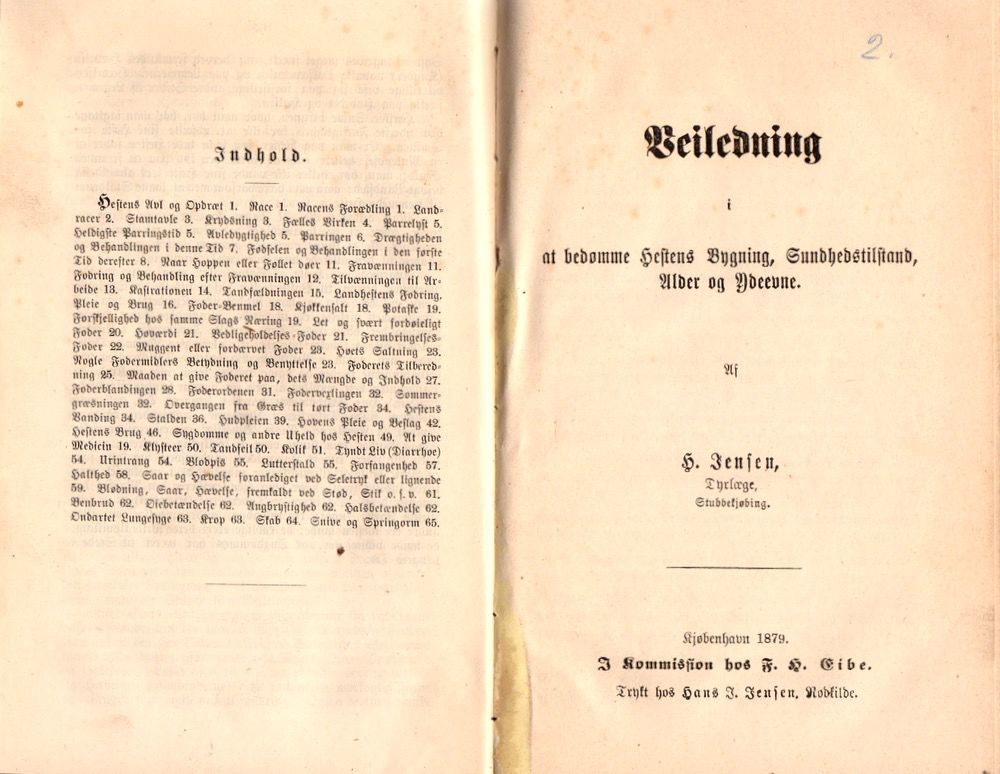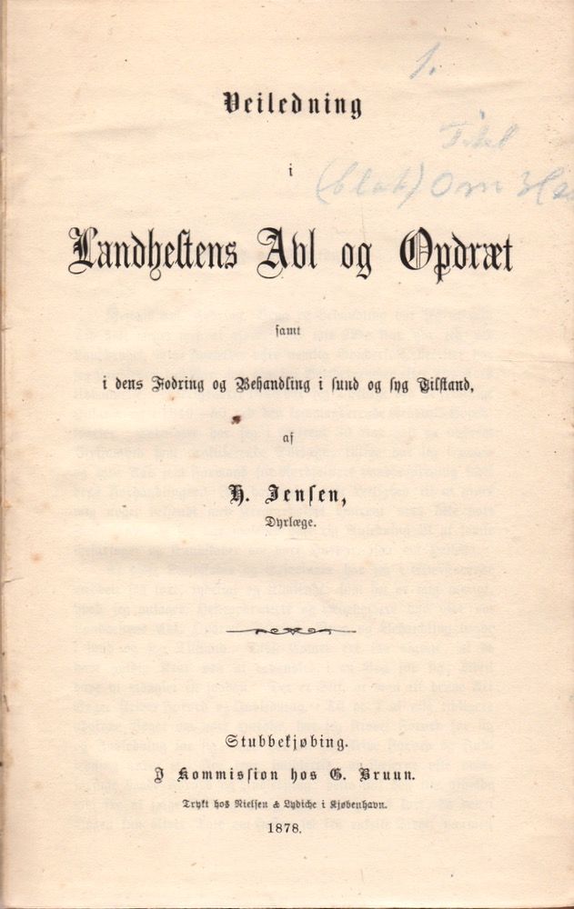 Veiledning i Landhestens Avl og Opdræt samt i dens Fodring og Behandling i sund og syg Tilstand. (+) Veiledning i at bedømme Hestens Bygning, Sundhetstilstand, Alder og Ydeevne.