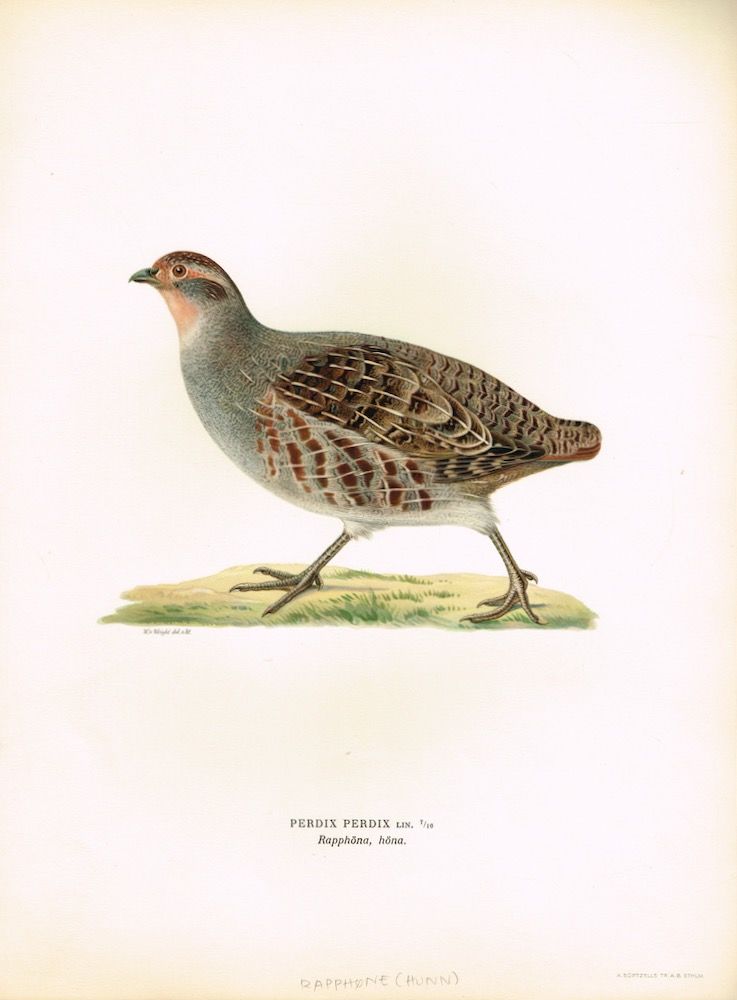 Perdix perdix. Rapphöna, höna. (Rapphøne, hunn). Fra verket “Svenska fåglar efter naturen och på sten ritade ... “