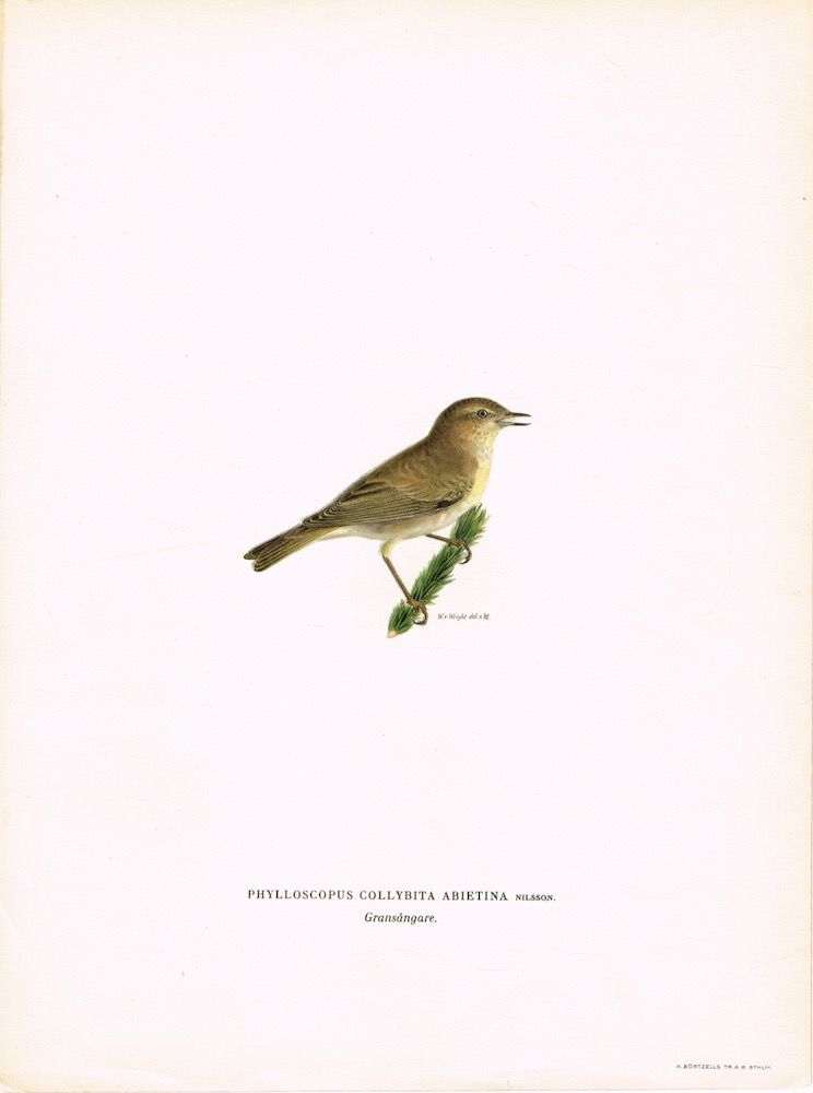 Phylloscopus collybita abietina. Gransångare (Gransanger). Fra verket “Svenska fåglar efter naturen och på sten ritade ... “