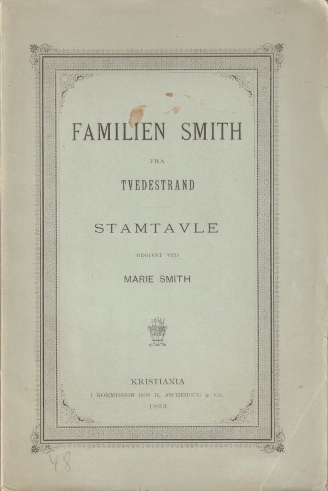 Familien Smith fra Tvedestrand. Stamtavle udgivet ved Marie Smith.