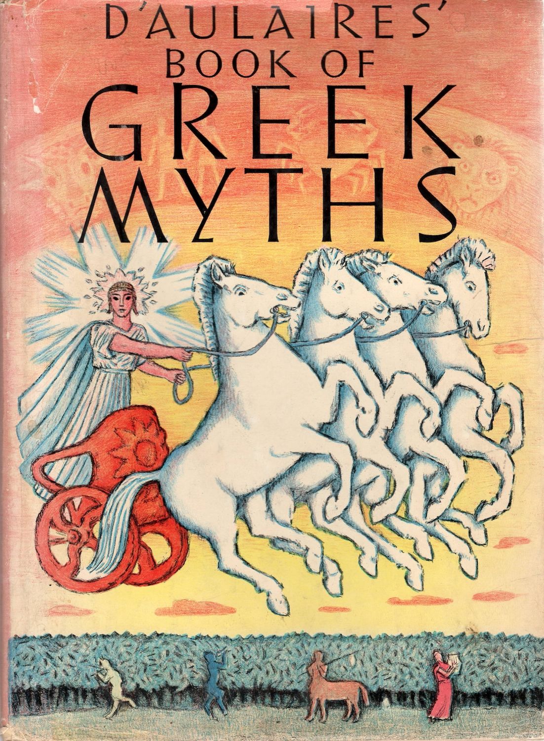 Engelske gjenfortellinger av de greske mytene, morsomt illustrert på paret d’Audelaires karakteristiske vis. De har også tegnet en egenhåndig tegning av en typisk gresk gudinne på smusstittelbladet. Forfatterne gjorde også en bok om de norrøne mytene. Ingri og Edgar d’Aulaire var amerikanske forfattere og illustratører som gjorde mengder av barnebøker sammen. Edgar var fra Sveits og Ingri hadde vokst opp på Kongsberg.