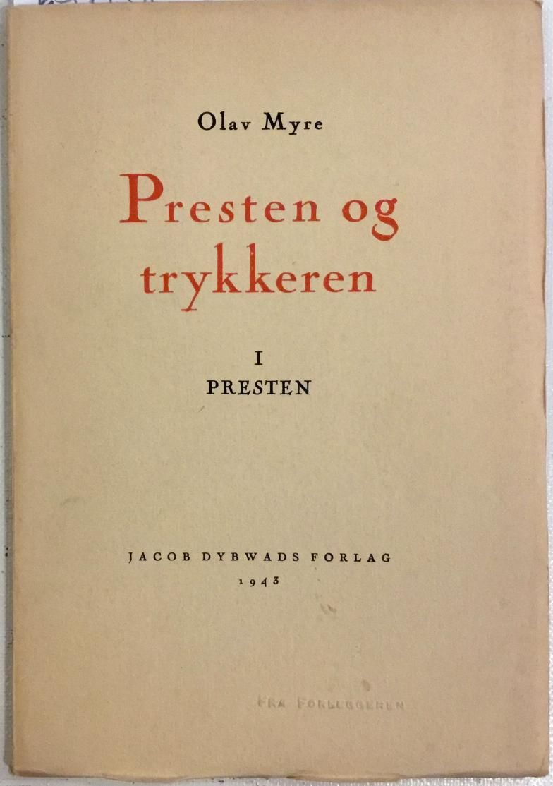 Oslo 1943. Jacob Dybwad. 8vo. 82 s. Hefta Lyst omslag med svart ryggtekst. Pent, delvis uoppskore eksemplar