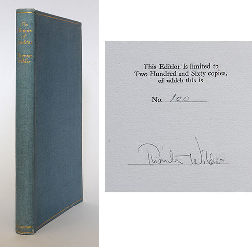London; Longmans, Green and Co., 1930. First UK edition. 26,5x20 cm. (6, 4 blanks), 104, (2) pp. Publisher's blue cloth with gilt top edge and satin bookmark. With a tipped-in frontispiece woodcut plate. Front board is insignificantly bowed. Rear corners are a bit bumped. Contents are bright and clean, with just a few scattered minimal specks. The novel is set in ancient Greece and is partly based on Terence's comedy Andria. This is no. 100 of 260 numbered and signed copies.