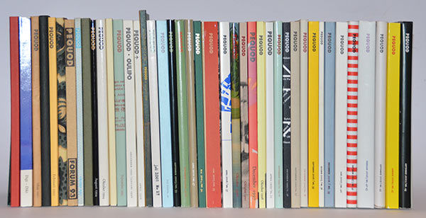 Malmö; Kulturföreningen Pequod, 1992-2010. C:a 22x15 cm. Sidantal varierar mellan 80 och 224 s. 42 häftade volymer, varav flera dubbelnummer, med tryckta omslag, vissa nummer även med tryckta skyddsomslag. Ett fåtal nummer med obetydligt nött rygghuvud. En mycket välhållen, komplett svit av tidskriften.