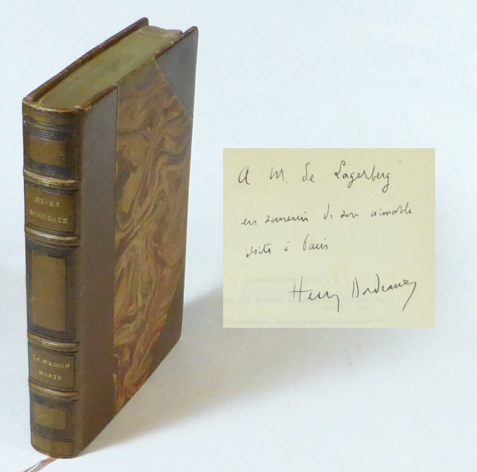 Paris; Plon, 1922. First edition. 19,5x13,5 cm. 313, (3, 4 blanks) pp. Brown half morocco (stamped ""Rel exécutée pour la lib Louis Conard""), spine with gilt title, black borders andsed bands, gilt top edge, marbled boards and endpapers. Wrappers and spine-strip are preserved. Spine and corners are insignificantly worn. A small portion at the top left hand corner of front board is faded. Contents are very fine, with just a few small scattered specks. No. 31 of 100 copies on ""Hollande Van Gelder"". Inscribed by the author to Swedish diplomat Joen Lagerberg (1888-1975). With the recipient's bookplate on front paste-down.