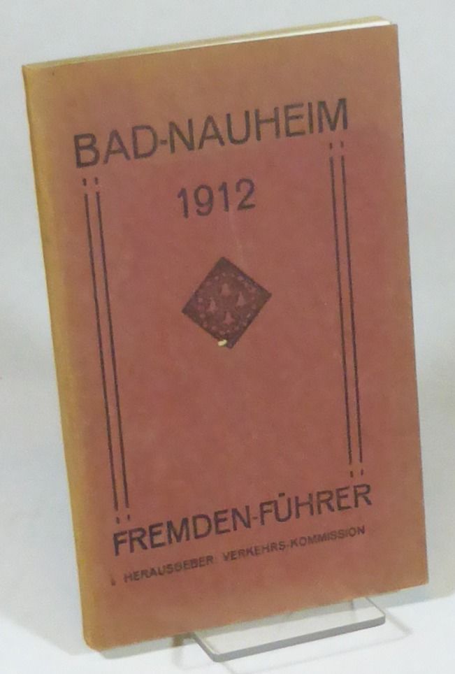 Bad-Nauheim; Verkehrskommission Bad-Nauheim, [1912]. 18,5x11,5 cm. 87, (1 blank) pp. + 16 photo plates + 2 maps on one folding leaf & 84 pp. of advertisements. Original printed wrappers. Spine and margins of the wrappers are a little faded. The top and fore-edge are slightly foxed. Contents are fine, with just a few cornerfolds. The map is insignificantly spotted. A fine copy of this guide to the spa town Bad-Nauheim.