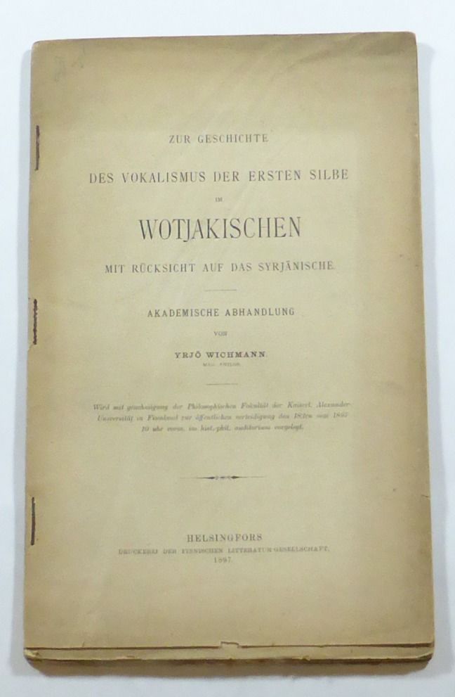 Zur Geschichte des Vokalismus der ersten Silbe im Wotjakischen, mit Rücksicht auf das Syrjänische.