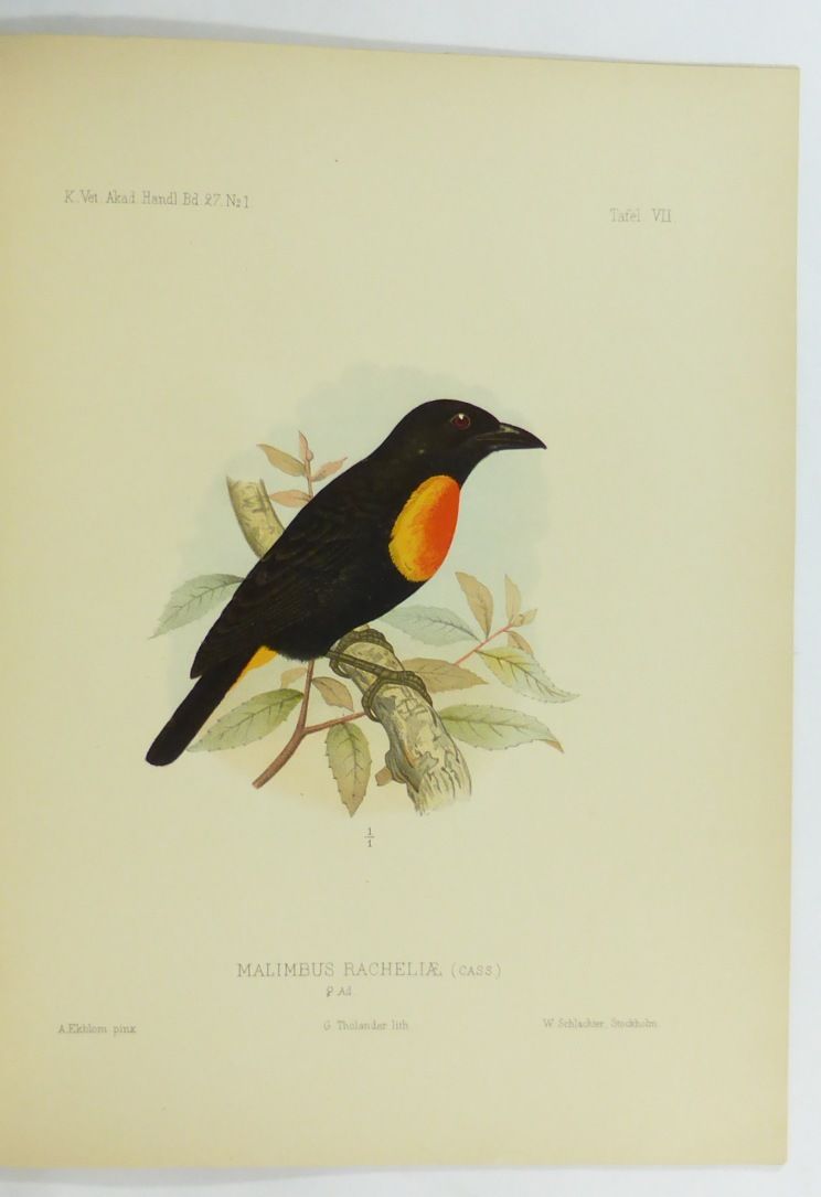 Stockholm; P. A. Norstedt & söner, 1895. (K. Svenska Vetenskapsakademiens Handlingar. Bandet 27. N:o 1). 30x24,5 cm. 120 pp. + 10 chromolithographed plates. Original printed wrappers. A short tear at lower rear folding. Most text leaves have a light dampstain at the lower corner. A fine copy.