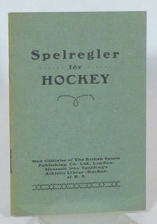 Helsingborg; Ernst Bergstens Boktryckeri, 1914. 14,5x9,5 cm. 32 s. Klammerhäftad med tryckt omslag. Ryggen lätt blekt. Fint ex. Regelboken behandlar endast landhockey för damer. Troligen den första i sitt slag på svenska och mycket ovanlig. Wikström, Svensk idrottslitteratur 1766-1950. Bibliografisk förteckning 1668.