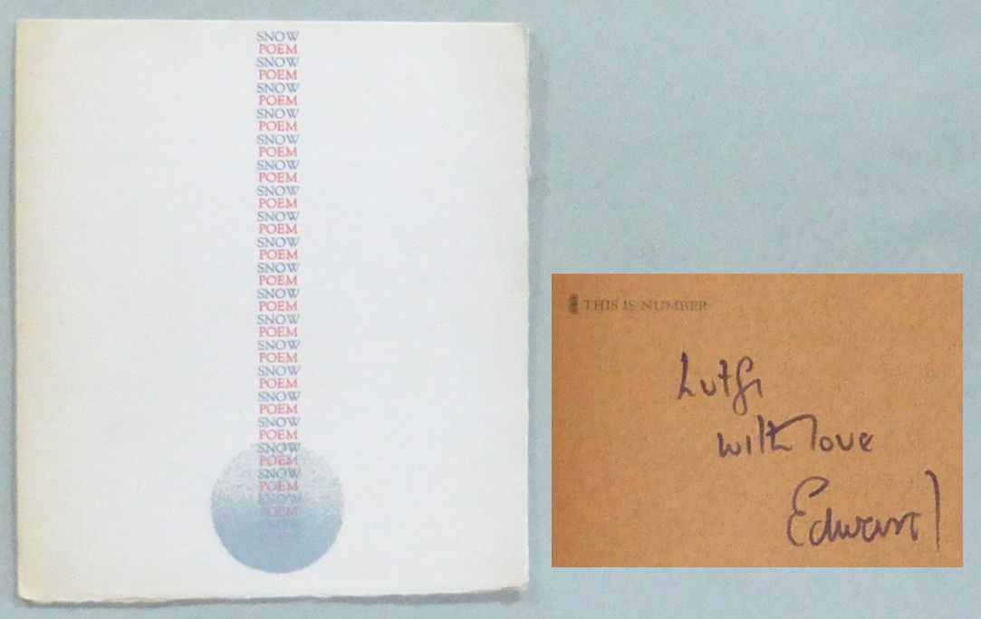 London; Turret Books, 1968. First edition. A broadside [approximately 18x15,5 cm] printed on brown paper and affixed to white card wrappers. Very fine. Designed and printed in 400 copies at Trigram Press by A. Benveniste and P. Vaughan. The first 200 copies were numbered and signed, this is one of the unnumbered copies. Inscribed to the poet and photographer Lütfi Özkök: ""Lutfi / with love / Edward"".