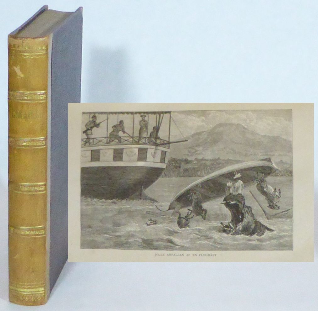 Stockholm; Bonniers, 1875. Originalets titel: Ismailia – A Narrative Of The Expedition To Central Africa For The Suppression Of Slave Trade (London, 1874). 8:o. 22x15 cm. (2), 397, (3) s. + 40 planscher + 2 kartor. Med illustrationer i texten. Samtida ljusbrunt halvfranskt band med upphöjda bind och förgylld ryggdekor, mörkbruna pärmpapper. Senare namnteckning på främre försättsblad (Gundersen). Rygg och pärmhörn något nötta. Fin inlaga med endast ett fåtal spridda småfläckar samt en minimal nagg i yttermarginalen på s. 363/364. Första svenska utgåvan.