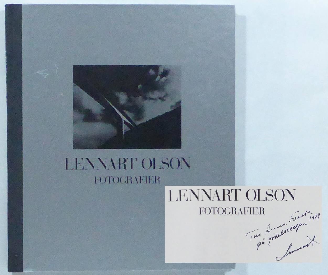 Stockholm; Fotografiska Museet / Moderna Museet, 1989. 25,5x22 cm. vii, (1 blank), 70, (1, 1 blank) pp. Publisher's clothbacked boards. Threre are a few insignificant scrape marks on front board. A fine copy. The book was published in conjunction with the exhibition of Olson's photographs. With introduction by Kristian Romare in Swedish and English: ""Bilden och rörelsen"", ""Picture and Motion"". Inscribed by Olson to his sister Anna-Greta on the title leaf.