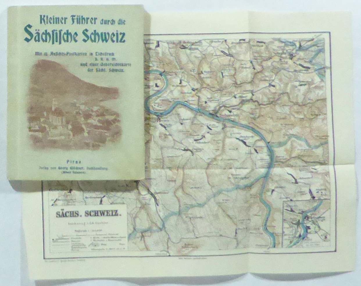 Kleiner Führer durch die Sächsische Schweiz. Kurze Beschreibung der wichstigsten Orten, Aussichtspunkte und lohnendsten Ausflüge des Elbthales von Dresden bis Pirna und das Elbsandsteingebirges bis Herrnskretschen. Mit 12 Ansichts-Postkarten in Lichtdruck.