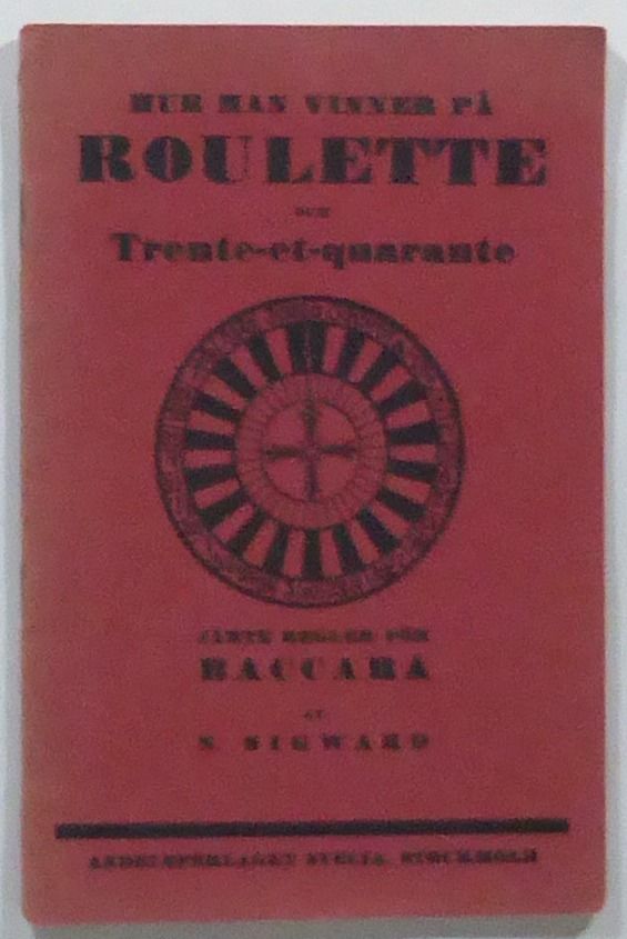 Stockholm; Andelsförlaget Svecia, 1934. 18,5x12,5 cm. 31, (1) s. Illustrerad. Klammerhäftad med tryckt omslag. Aningen nötta ryggändar. Klamrarna lätt rostiga. Inlagan med ett fåtal spridda småfläckar. Fint ex. Enda boken av författaren som förmodligen gömmer sig bakom en pseudonym. Det inledande avsnittet om roulette är det mest utförliga, där olika spelsystem presenteras och författaren beskriver egna erfarenheter från Monte Carlo.