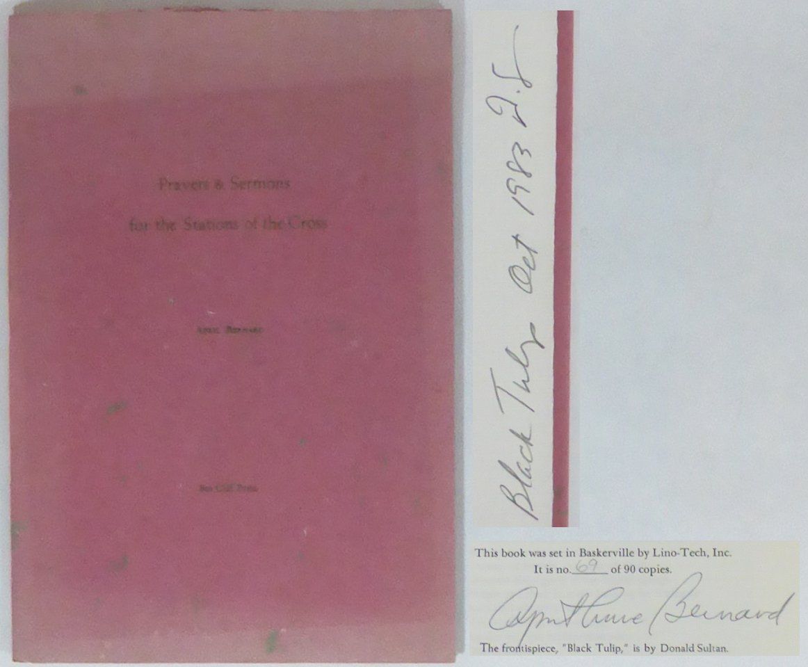 New York; Sea Cliff Press, 1983. First edition. 27,5x19 cm. (19, 1 blank) pp. + the original etching ""Black Tulip"" by Donald Sultan as frontispiece. Original printed wrappers. Some fading to the wrappers, otherwise fine. No. 69 of 90 issued copies, signed by Bernard on the colophon, and by Sultan on rear free endpaper: ""Black Tulip Oct. 1983 D. S."" From the library of Anders Tornberg Gallery in Lund, Sweden, and with a stamp confirming this on the last blank page.