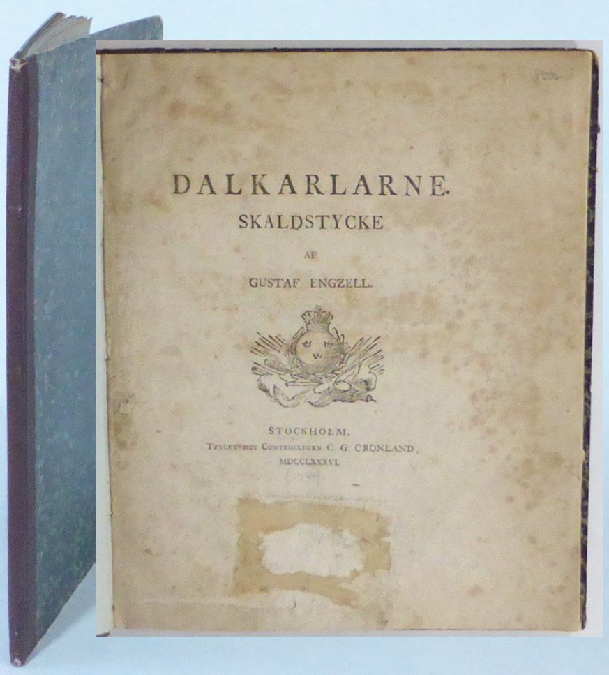 Stockholm; tryckt hos controlleurn C. G. Cronland, 1786. Originalupplaga. 4:o. 24x19,5 cm. (6, 2 blanka), 44 s. Senare brunt klotryggband med marmorerade pärmpapper. Lätt nötta ryggändar. Pärmhörnen nötta. Genomgående lätt fläckad; titelbladet något värre fläckat, lätt veckat och med ett märke och ett litet hål i nedre marginalen efter någon sorts etikett som tagits bort. S. (7/8) med ett litet brännhål i övre marginalen samt en kort reva i nedre marginalen. S. 3/4 med något naggad yttermarginal. Liten förlust i nedre marginalen på s. 13/14. Litet hål i nedre marginalen på s. 41/42. Engzell (1757-1797), präst och författare, som sådan ansedd som en osjälvständig följare av Thorild och Lidner. Malmström (Grunddragen af svenska vitterhetens historia, Bd. 2) skriver: ""Denna Engzell saknade icke till en viss grad poetiska anlag; han versificerade med lätthet, och han saknar ej heller verkligt poetiska bilder och tankar, men han är ojemn och affekterad. Han var, såsom Hammarsköld säger, excentriserad af Thorilds väldigare idéer, utan kraft att rigtigt fatta dem. De förledde honom derföre till en krystning, en tillgjord styrka, som i högsta grad missklädde honom, och den aga, som han derföre måste lida af Stockholms-Posten, var ganska väl förtjent.""