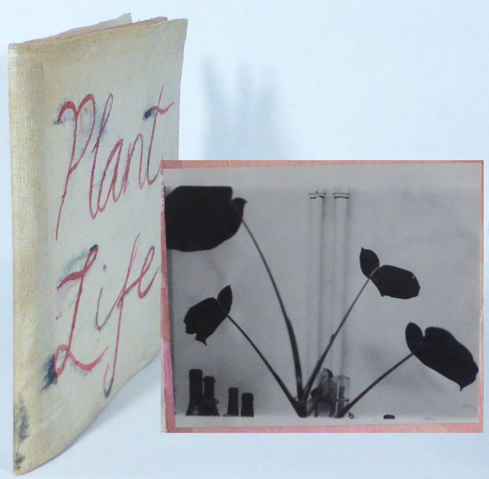 No place, [1986]. 25x25 cm. 6 original black-and-white photographs, measuring 20x24 cm, mounted on card, in home-made canvas boards with the title ""Plant Life"" in handwriting on front board, and the signature ""I. D. 86"" on rear board. The photo book, very likely a unique copy, depicts different types of plants, and was probably a gift for the gallery owner Anders Tornberg in Lund, Sweden, who was the latest owner.