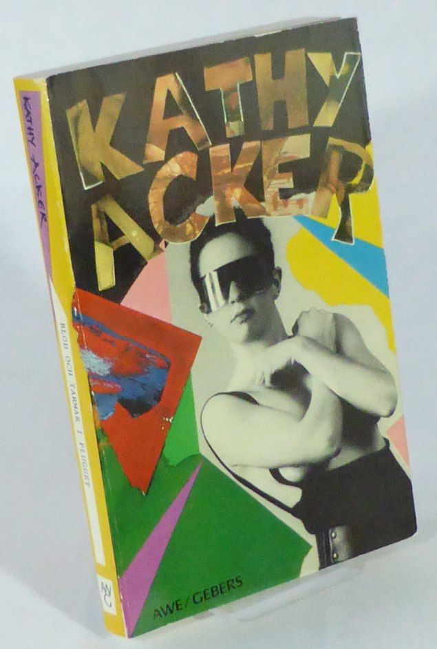 Stockholm; AWE/Gebers, 1985. Originalets titel: Blood and Guts in High School (New York, 1984). 21x13,5 cm. 206, (26) s. Häftad med tryckt omslag. Omslag av Bernt Danielsson med författarens fotografi av Robert Mapplethorpe. Obetydligt nötta omslagskanter. Fint ex. Första svenska utgåvan av Ackers provokativa genombrottsbok, en collageroman med inslag av våld, incest och prostitution.