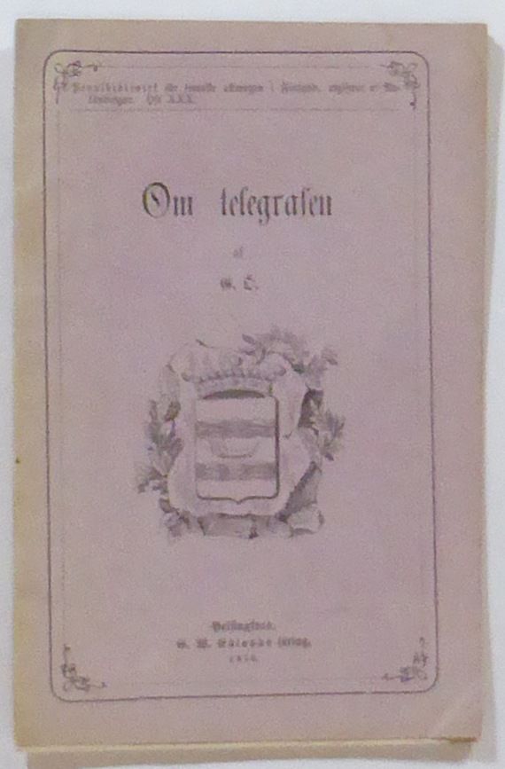 Stockholm; Iwar Haeggströms Boktryckeri, 1866. Diss. 21,5x14,5 cm. (7, 1 blank), 146 s. Gråpappersomslag med författarens efternamn handskrivet på ryggen. Ouppskuren. Med stämpel från Universitetsbiblioteket i Lund samt utgallringsstämpel på främre omslag. Det överdimensionerade omslaget är aningen veckat i yttre samt nedre marginalerna. Fint ex.
