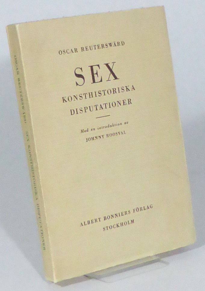 Stockholm; Bonniers, 1945. 20,5x14 cm. 197, (1 blank) s. Häftad med tryckt omslag. Omslaget obetydligt solkat. Liten trekantig bokhandelsstämpel på bakre omslag. Fint ex. Innehåller Reuterswärds synpunkter på följande avhandlingar: Nils Gösta Sandblad: ""Anders Trulson. En studie i sekelskiftets svenska måleri"" / Bertil Waldén: ""Nicolaes Millich och hans krets. Studier i den karolinska barockens bildhuggarkonst"" / Ingegerd Henschen: ""Tygtryck i Sverige I: Före 1700"" / Bengt Söderberg: ""De gotländska passionsmålningarna och deras stilfränder. Studier i Birgittinskt muralmåleri"" / Gustaf Engwall: ""Karl Isakson"" / Eskil Cronlund: ""Carl d'Unker 1828-1866"". Med Jan Torsten Ahlstrands namnteckning på halvtitelbladet.