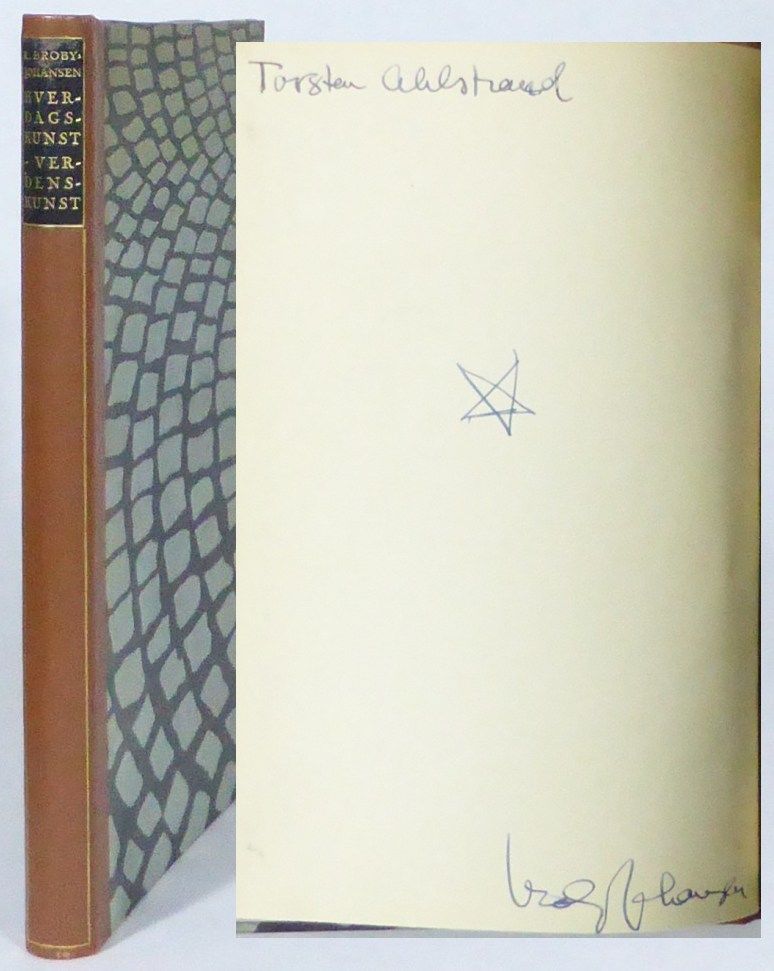 Köpenhamn; Gyldendalske boghandel / Nordisk forlag, 1946. 25,5x18,5 cm. (1, 1 blank), 204 s. Rikt illustrerad. Förlagets bruna halvfranska band med ryggetikett I svart skinn, mönstrade försättsblad och infärgat övre snitt. Främre häftesomslag medbundet. Ryggen aningen nött. Fint ex. Med en dedikation från Broby-Johansen till den svenske konsthistorikern och museimannen Jan Torsten Ahlstrand.