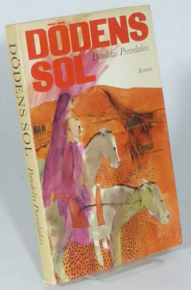 Stockholm; Bonniers, 1964. Originalets titel: O Ilios tou thanatou (Aten, 1962). 21x13,5 cm. 207, (1) s. Häftad med tryckt omslag. Omslag av Kjell Ivan Anderson. Ouppskuren. Det överdimensionerade omslaget är aningen veckat i nedre marginalerna. Ovanligt fint ex. Första svenska utgåvan av den första svenska översättningen av Prevelakis. ""Handlingen, som utspelas vid tiden för första världskriget är förlagd till Kreta. Berättaren, Jorgakis, har blivit föräldralös och växer upp hos sin faster, en storslagen kvinna, 'en sten på vilken människan stiger upp för att kunna blicka ut över sig själv'. Hon är stark och djup i sin känsla, rikt begåvad med en fantasi som överallt i naturen, i vardagens sysslor, i antikens folkligt förvandlade myter och de kristna legenderna finner bilder som förmedlar hennes erfarenheter, klokhet och humor. Hennes ende son - som alltså är Jorgakis kusin - befinner sig vid fronten. Där kommer han i gräl med en kamrat från hembyn och råkar döda denne. Vendettans förbannelse vilar över det kretensiska livet, och den dödes släktingar utkräver blodshämnd. Den 15-årige Jorgakis växer upp - och växer - under detta hot."" (baksidestext).