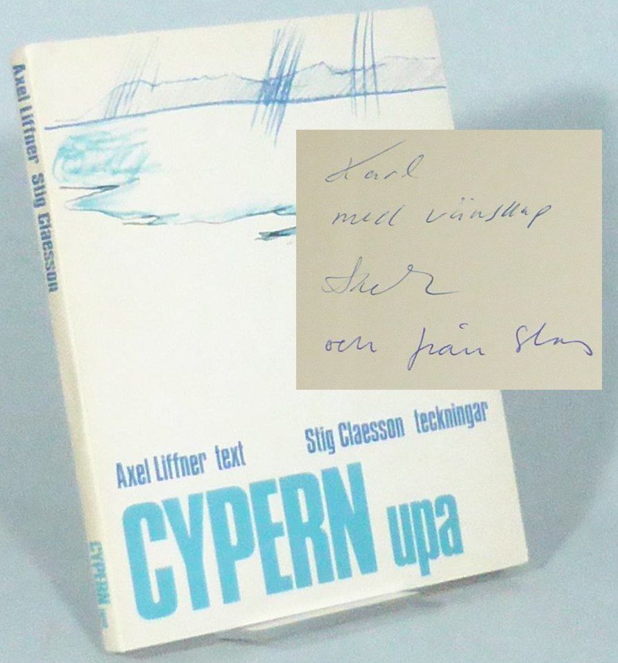 Stockholm; Bonniers, 1966. Originalupplaga. 18,5x15 cm. 150, (1, 1 blank) s. Häftad med omslagsteckning av Slas. Omslaget samt nedre marginalen av sista bladet med spår av skadedjursangrepp. Några svaga fläckar på omslaget. Dedikation skriven av både Liffner och Slas till Karl Vennberg: ""Karl / med vänskap / Axel / och från Slas"".