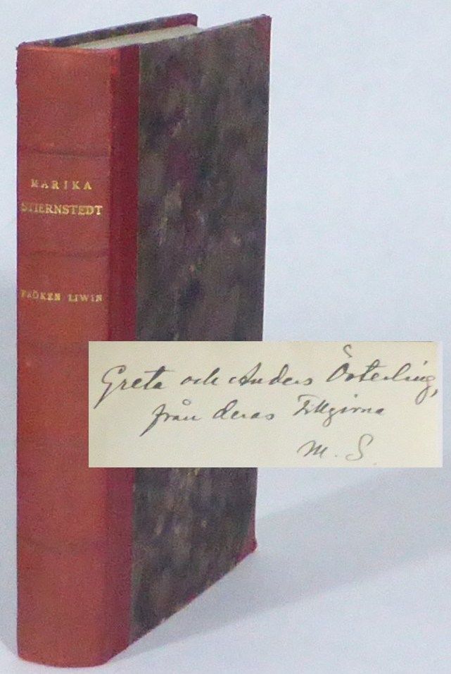 Stockholm; Bonniers, 1925. Originalupplaga. 19x13 cm. 344 s. Osignerat rött halvfranskt band med förgylld ryggtitel och marmorerade pärmpapper. Främre omslaget medbundet. Aningen snedläst. Rygg och pärmhörn något nötta. Romanen, som fick stor uppmärksamhet då den publicerades, skildrar en kvinna ur övre medelklassen som föder ett barn i hemlighet och lämnar bort det för att undvika skandal, samt hennes senare försök att få tillbaka barnet från fosterfamiljen. Dedikation: ""Greta och Anders Österling, från deras tillgivna M. S."" Österling skrev i sin recension i Svenska Dagbladet att boken motsvarar ""det allmänna behovet av samvetsgrann och fullständig psykologisk berättarkonst"".