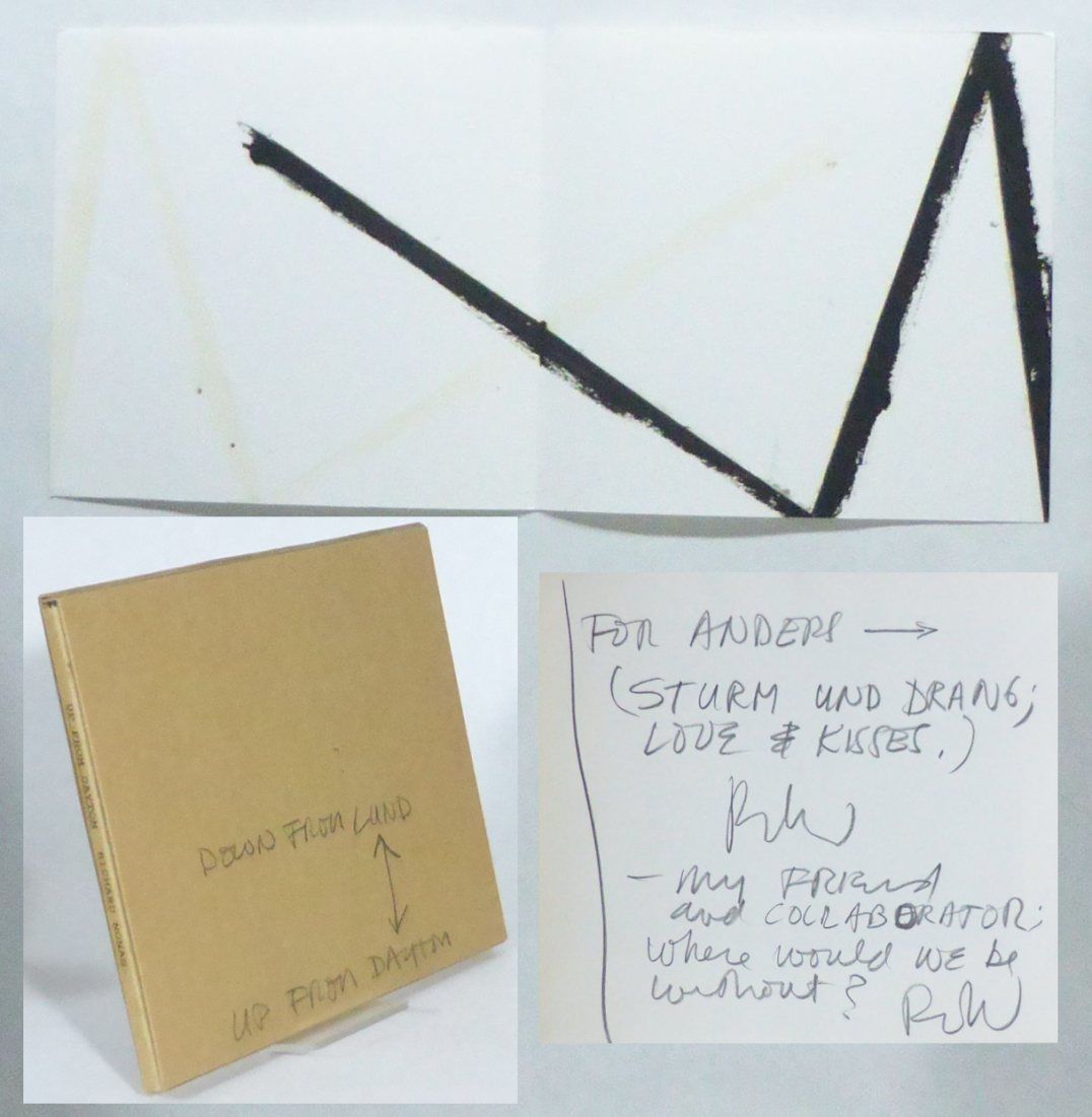 [Åhus; Kalejdoskop], 1986. First edition. 18,5x22 cm. (62, 2 blanks) pp. + original drawing. Printed stiff cardboard wrappers, housed in the original slipcase. Very fine. Artist's book with texts and drawings by Nonas, based on the first flight of the aviation pioneers Orville and Wilbur Wright and the sculptural works of Brancusi. Published in conjunction with Nonas's exhibition at Anders Tornberg Gallery in Lund, Sweden, and issued in 500 copies, of which 50 copies are numbered and signed, and contain an original drawing by the artist. This is an artist's proof, with a signed original drawing. Inscribed by Nonas to gallery owner Anders Tornberg: ""For Anders [drawn arrow] / (STURM UND DRANG; LOVE & KISSES.) / RN / - my FRIEND and COLLABORATOR; where would we be without? / RN"".
