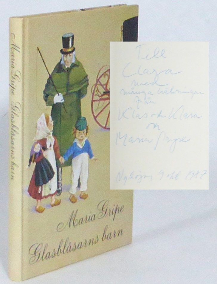 Stockholm; Bonniers juniorförlag AB, 1987. 20,5x13 cm. 160, (1, 1 blank) s. Förlagets tryckta pappband. Obetydliga tryckmärken på pärmarnas nedre kanter. Svag skugga efter prislapp på bakre pärm. Fint ex. Nyutgåva av boken som ursprungligen publicerades 1964. Dedikation: ""Till Clara med många hälsningar från Klas och Klara och Maria Gripe / Nyköping 9 okt. 1987"". De nämnda Klas och Klara är bokens huvudfigurer.