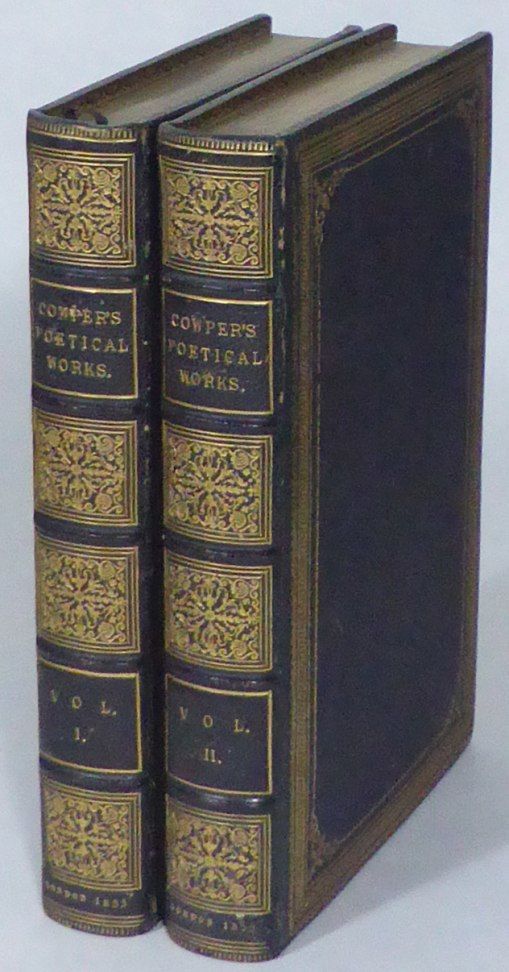 London; William Pickering, 1853. 8:o. 22,5x15 cm. Portrait plate, lxiv, 437, (1) & x, (1, 1 blank), 498 pp. Two volumes in sturdy green full leather, bound for T. Hatchard, London, with raised bands on spine, gilt decorations in compartments, on the boards and edges of the boards, and with gilt edges. Anonymous bookplate in both volumes. Spines are insiginificantly worn, and a few corners are slightly bumped. A fine set, containing a memoir of the author, and a preface by John Newton.