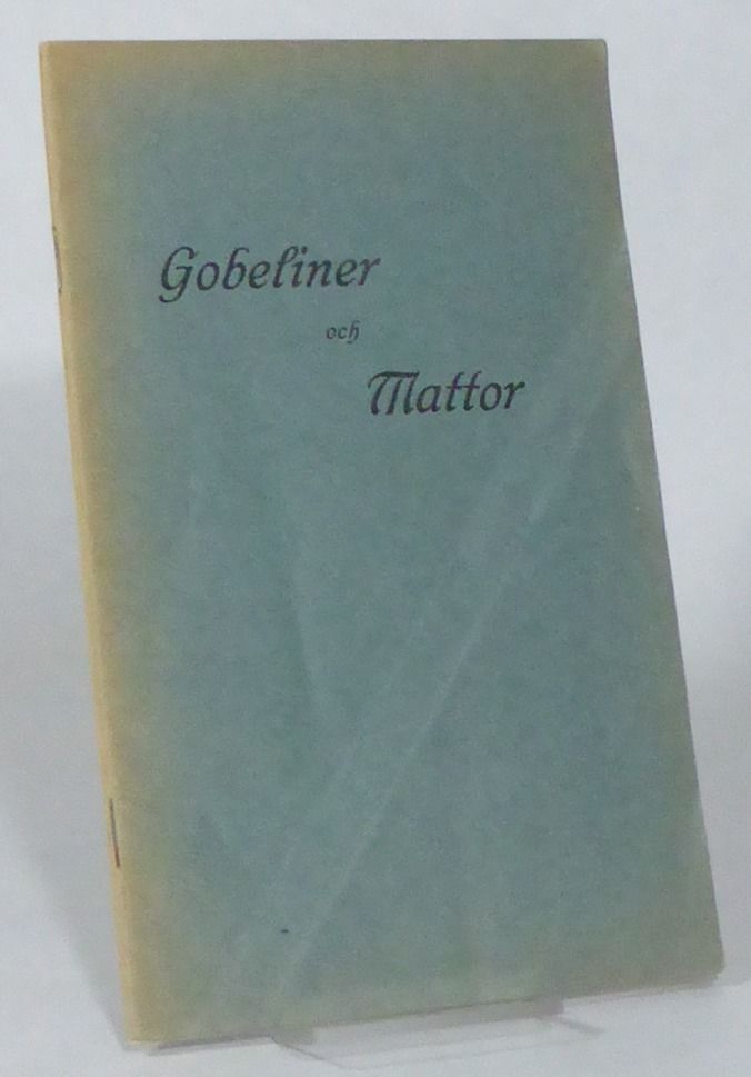 Lund; Skånska centraltryckeriet, 1919. 23x14,5 cm. 19, (1 blank) s. + plansch. Med ett fåtal illustrationer I texten. Klammerhäftad med tryckt omslag. Rygg och omslagsmarginaler lite blekta. Främre omslag med ett svagt diagonalt veck. Liten bläckplump på s. 18. Bra ex. På utställningen visades framförallt svensk textil folkkonst, vävda tapeter och orientaliska mattor. Med ett orienterande förord samt närmare beskrivning av 40 föremål.
