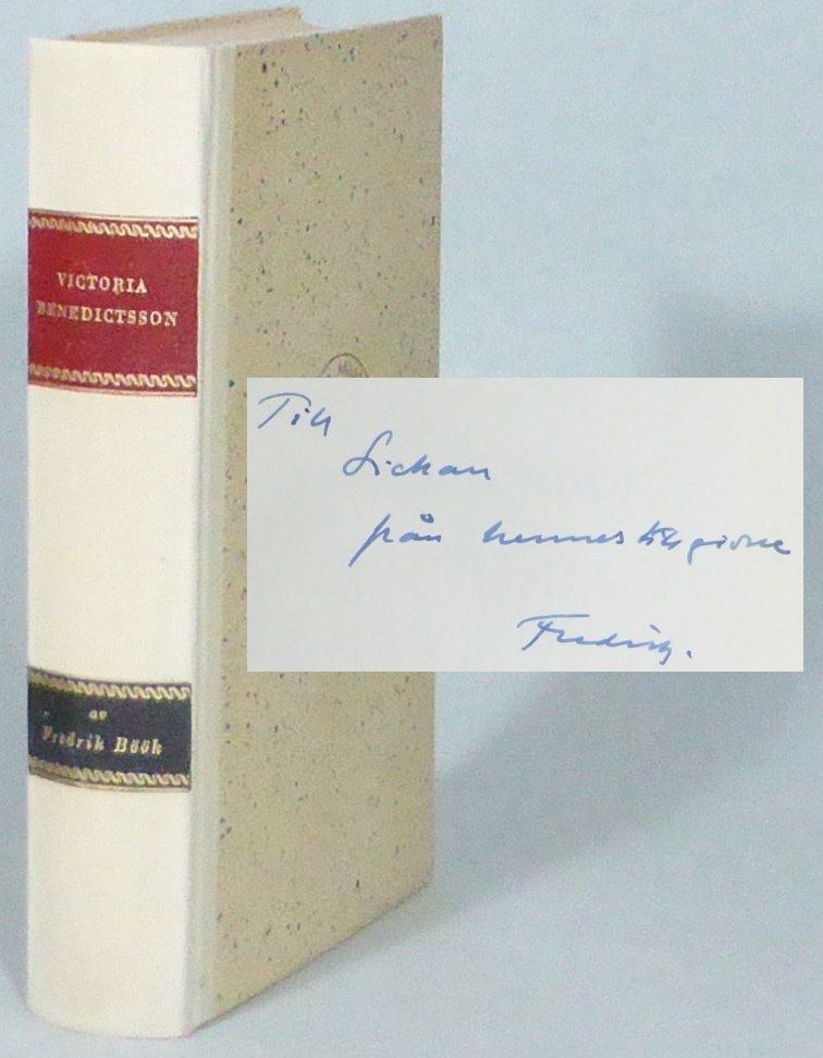 Stockholm; Norstedts, 1950. (Svenska Akademiens Minnesteckningar). 21,5x14 cm. (4), 396 s. + 7 planschblad. Utgivarens klotryggband med förgylld ryggtitel och mönstrade pärmpapper. Nedre pärmhörnen lite nötta. Fint ex. Biografin är baserad på Benedictssons då nyligen offentliggjorda dagbok. Dedikation: ""Till Sickan från hennes tillgivne Fredrik"". Arvidsson, Fredrik Bööks bibliografi 1898-1967, 3050.