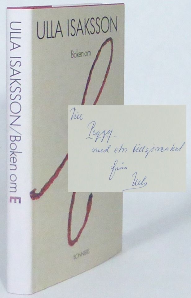 Stockholm; Bonniers, 1994. Originalupplaga. 22x14 cm. 253, (1) s. Förlagets pappband med tryckt skyddsomslag. Lätt snedläst. Fint ex. Isaksson beskriver här sitt samliv med Erik Hjalmar Linder och hans demenssjukdom. Dedikation till förläggaren Peggy Bonnier: ""Till Peggy med stor tillgivenhet från Ulla"".