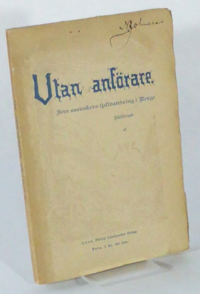 Lund; Philip Lindstedts Förlag, 1885. 20,5x14 cm. 149, (1, 2 blanka) s. Häftad med tryckt omslag. Rygg och omslag delvis mörknade. Horisontellt knäckmärke på ryggen. Främre omslag med några små mörka prickar samt en tidig ägares namnteckning (N. Johnsson). Senare namnteckning (Lars Lundberg) på främre omslagets verso. Ett fåtal blad med lite ojämn yttermarginal p. g. a. ovarsam uppskärning. Välbevarat exemplar. Eva Wigström (1832-1901), svensk folklivsforskare, säger i förordet att ""Vi skola utgifva en bok, som kan blifva ett bidrag till kännedom om det norska folket; aflifvar den gamla myten om att det är omenskligt dyrt att resa i Norge, och slutligen ingifver 'många landsmän af båda könen' lust och mod till att stärka kropp och själ med fjellvandringar i detta af svenskar så föga kända broderland.""