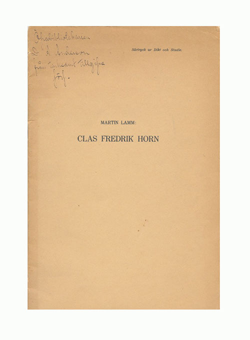 Clas Fredrik Horn. Särtryck ur Dikt och studie.
