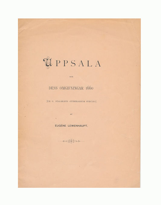 Uppsala och dess omgifningar 1660 (ur G. Stalhoffs ”Itinerarium Sveciæ”) af Eugène Lewenhaupt. [Särtryck ur Upplands fornminnesförenings tidskrift, band 3, 1894-96].