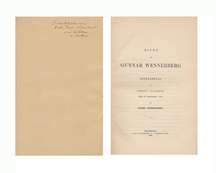 Särtryck ur ”Svenska akademiens handlingar”. Annerstedt och Lewenhaupt var kollegor på Uppsala universitetsbibliotek.