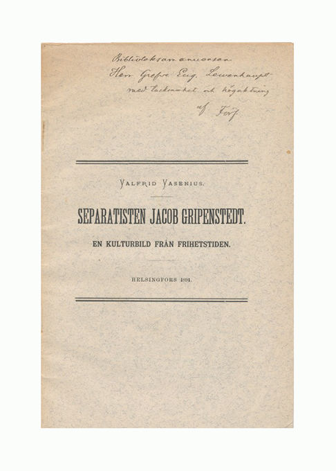 Separatisten Jacob Gripenstedt. En kulturbild från frihetstiden. Särtryck ur: Öfversigt af Finska vet. soc:s förhandlingar 33.